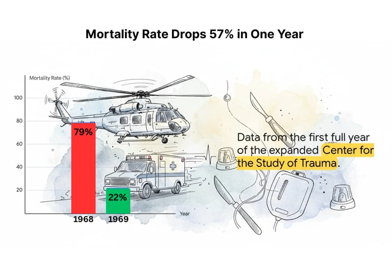 Despite the backlash, the results were undeniable. After the 12-bed Center for the Study of Trauma opened in 1969, the mortality rate for its patients plummeted. In its first full year of operation, the rate dropped to 22%, a stunning improvement over the 79% mortality rate from 1968. The data proved that the controversial approach was saving lives, and Cowley pressed on in the face of criticism.