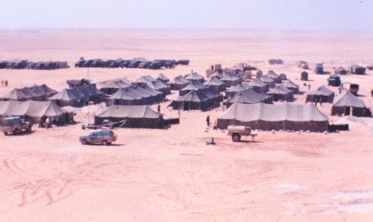 View of a partially erected 5th Mobile Army Surgical Hospital during Gulf War I. (Iraq, 1991)